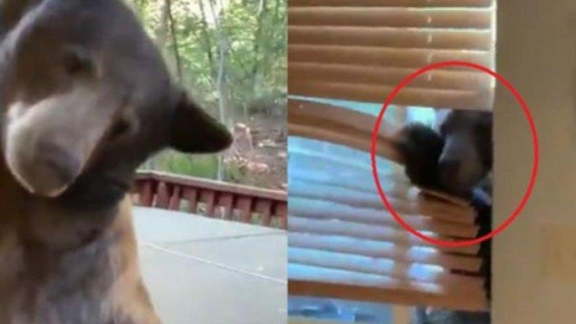 Η αρκούδα μυρίζει την πόρτα κι ανακαλύπτει το παράθυρο! Το κεφάλι της περνάει από τα στόρια κι η κοπέλα συνεχίζει να φωνάζει την φίλη της «Άντζελα» λίγο πιο ψυθιριστά, μην την ακούσει και η αρκούδα φυσικά...