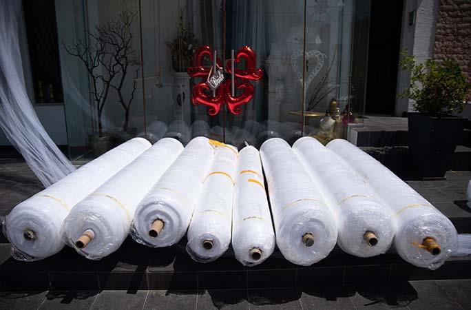 σίας για τη Μαρία ήταν η εξεύρεση ενός εργοστασίου που θα μπορούσε να παράγει τα ρολά από τούλι, δημιουργώντας ένα πέπλο που πληρούσε επαγγελματικά πρότυπα και διαστάσεις. Αυτή της η έρευνα διήρκεσε για ένα μήνα.