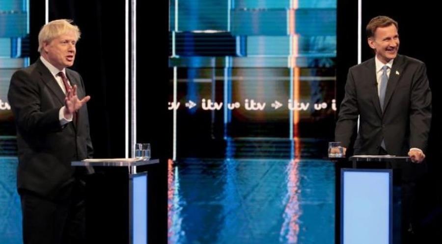 Σε ό,τι αφορά τη χθεσινή αναμέτρηση των δυο υποψηφίων, ο Μπόρις Τζόνσον είπε ότι θα τερματίσει την «ηττοπάθεια» που δεν έχει επιτρέψει ακόμα στη χώρα να βγει από την ΕΕ, τηρώντας τη διορία της 31ης Οκτωβρίου για το Brexit.