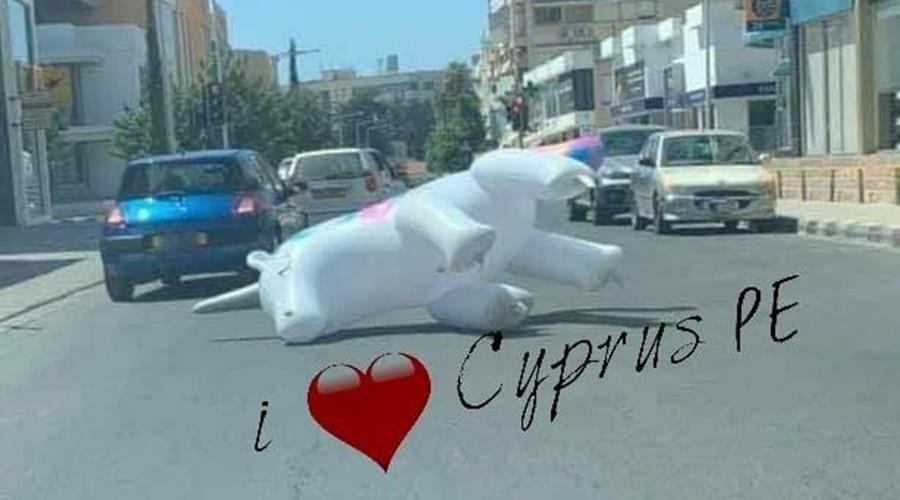 Πλαστικός μονόκερος έφραξε δρόμο της Πάφου και έγινε viral (pic)