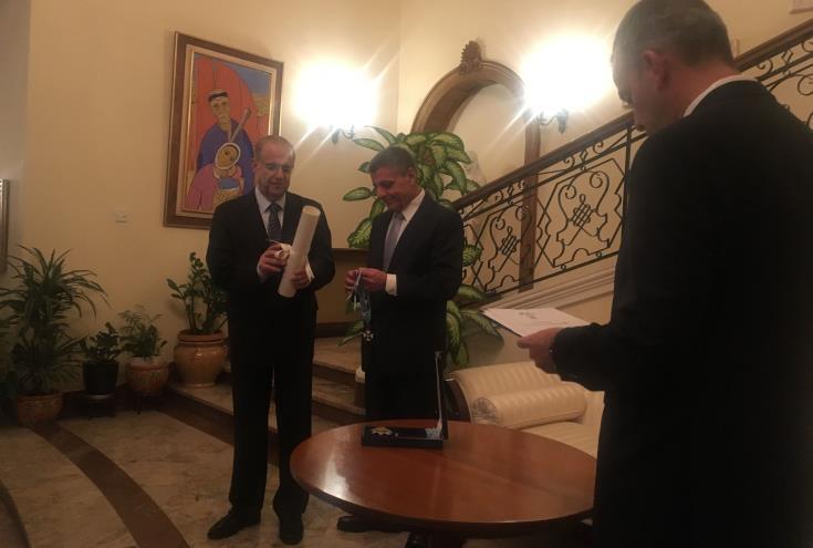 Σε μια λιτή τελετή στην οικία του Έλληνα Πρέσβη κοντά στο Λήδρα Πάλας, απονεμήθηκε χθες βράδυ στον τέως Υπουργό Εξωτερικών Ιωάννη Κασουλίδη, ο Ανώτερος Ταξιάρχης του Τάγματος του Σωτήρος.