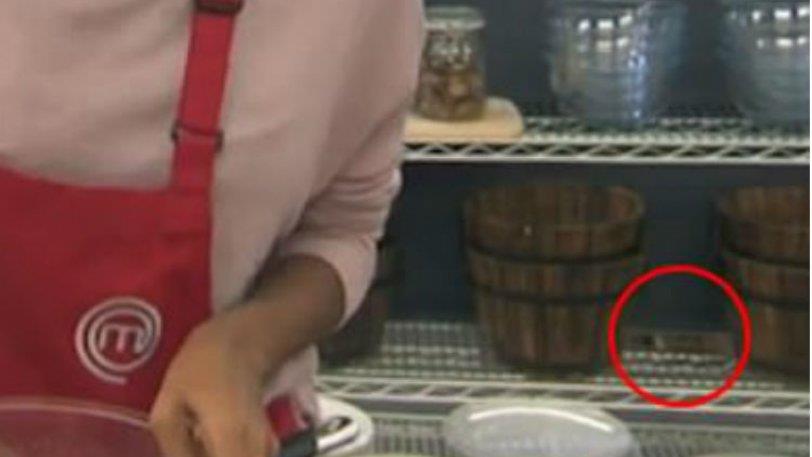 Συγκεκριμένα, οι παρατηρητικοί, την ώρα που μία διαγωνιζόμενη χτυπούσε τα αυγά για μία δοκιμασία, εντόπισαν το τροκτικό να κόβει βόλτες στα ράφια από πίσω.
