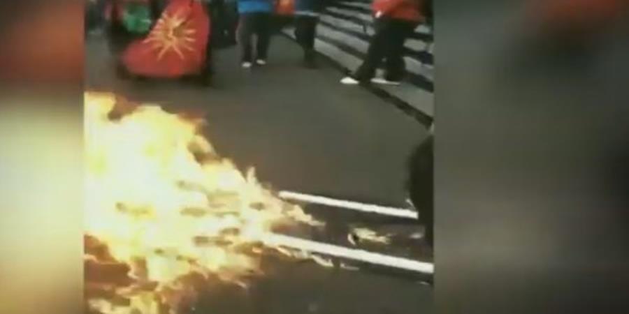 Ελληνικές σημαίες παραδόθηκαν στις φλόγες, με την αστυνομία να σβήνει τη φωτιά. Κατά τη διάρκεια της πορείας των Σκοπιανών, διαδηλωτές έκαψαν και μια βουλγαρική σημαία. Συλλήψεις δεν έγιναν από την αστυνομία, η οποία έκανε συστάσεις στους διαδηλωτές για τη συμπεριφορά τους.