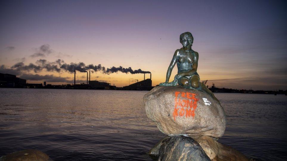 Γράφοντας το σύνθημα «Ελευθερώστε το Χονγκ Κονγκ», άγνωστοι βανδάλισαν τη «Μικρή Γοργόνα», το πιο διάσημο σύμβολο της Δανίας.