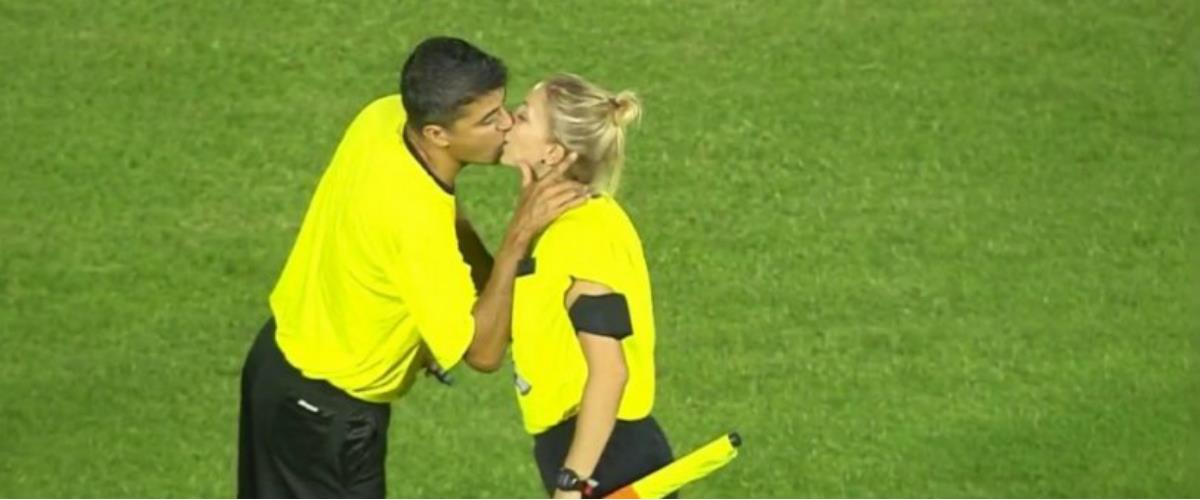 Η διαιτητής Φεράντα Κολόμπο, κατά τη διάρκεια φιλικής αναμέτρησης, φίλησε τον επίσης διαιτητή σύζυγό της και έγινε viral.