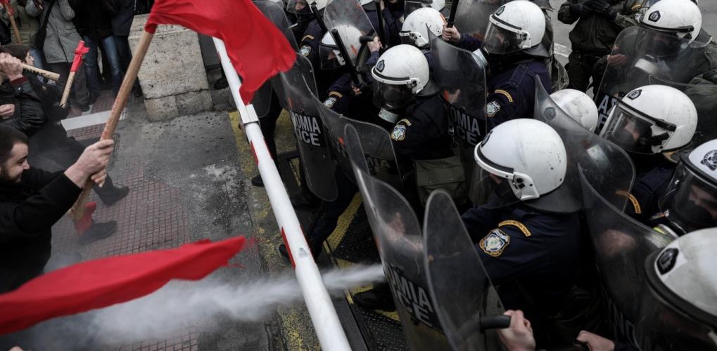 Ένταση επικράτησε το μεσημέρι στο Σύνταγμα, στην Αθήνα, μπροστά από τη Βουλή των Ελλήνων, ανάμεσα σε φοιτητές που συμμετέχουν στο εκπαιδευτικό συλλαλητήριο και σε αστυνομικές δυνάμεις.