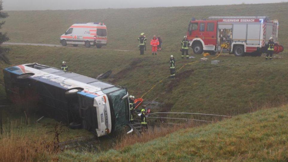 Δύο παιδιά σκοτώθηκαν και άλλα 20 τραυματίστηκαν, όταν το σχολικό λεωφορείο που τους μετέφερε ανετράπη κοντά στην πόλη Άιζεναχ της Θουριγγίας.