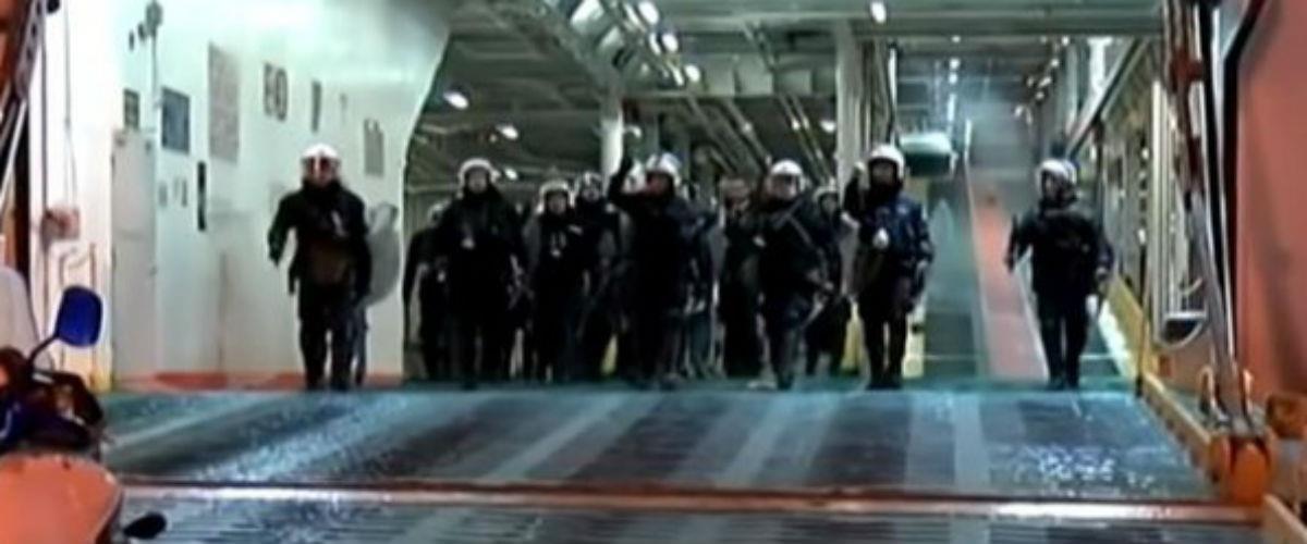 Οπως αναφέρει το ρεπορτάζ του neakriti, οι οπαδοί του Ολυμπιακού συνεπλάκησαν με αστυνομικές δυνάμεις πετώντας αντικείμενα και χρησιμοποιώντας εναντίον τους μέχρι και πυροσβεστήρες. Οπως φαίνεται και στο σχετικό βίντεο επιστρατεύτηκε μεγάλη αστυνομική δύναμη για να εξομαλυνθεί η κατάσταση. Μάλιστα διμοιρία των ΜΑΤ εισήλθε μέσα στο πλοίο για να αντιμετωπίσει τους χούλιγκαν.