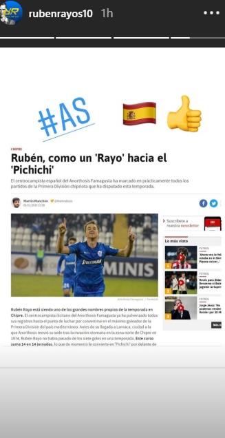 Ο Ρούμπεν Ράγιος ανάρτησε στον προσωπικό του λογαριασμό στο instagram φωτογραφία με το εν λόγω δημοσίευμα.