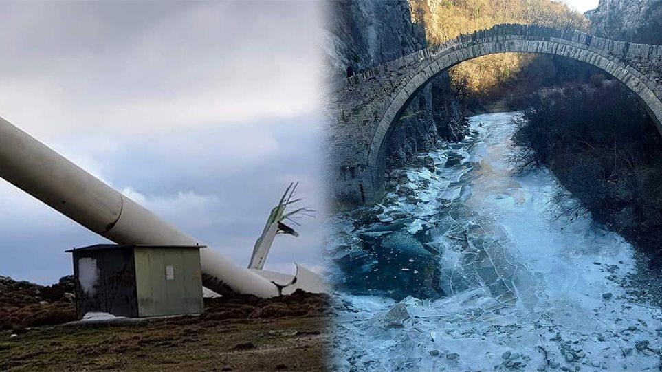 Οι χαμηλές θερμοκρασίες πάγωσαν ποτάμια και λιμάνια, ενώ οι ισχυροί άνεμοι ξερίζωσαν από δέντρα μέχρι... ανεμογεννήτριες στο πέρασμά τους.