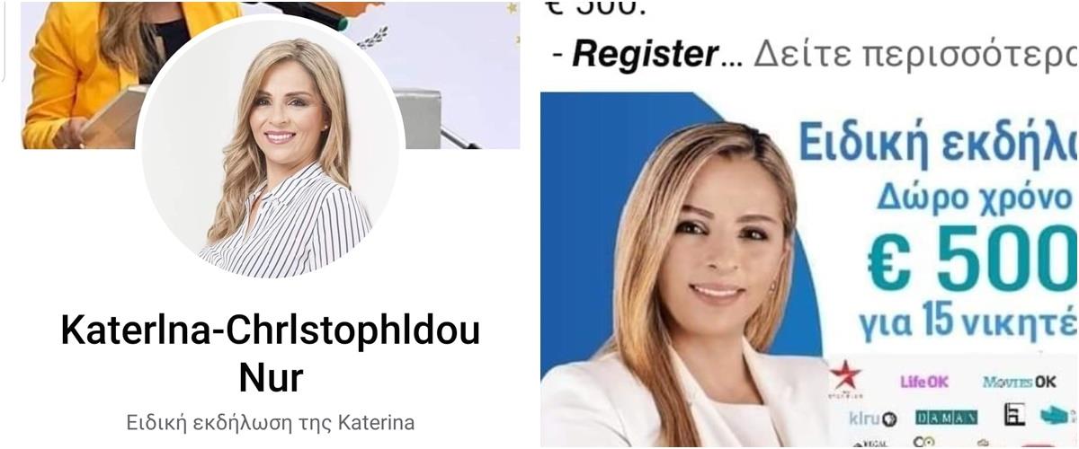 Καλεί εξάλλου τους φίλους της, να μην αποδεχθούν κανένα αίτημα από το fake account Katerina Christophidou nur.