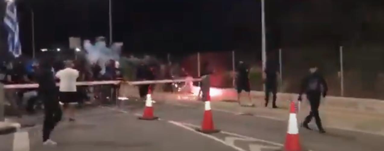Συγκεκριμένα, γύρω στις επτά το απόγευμα, δεκάδες άτομα που είχαν καλυμμένα τα πρόσωπά τους με κουκούλες, κατευθύνθηκαν προς το οδόφραγμα, ενώ κατάφεραν να σπάσουν το κιγκλίδωμα της «γραμμής», ανάβοντας την ίδια ώρα πυρσούς και φωτοβολίδες. Με ελληνικές σημαίες, επίσης, οι οργανωμένοι φώναζαν διάφορα συνθήματα, μεταξύ αυτών «Η Κύπρος είναι ελληνική» και «Τούρκοι δολοφόνοι», ενώ έριχναν πυροτεχνήματα.