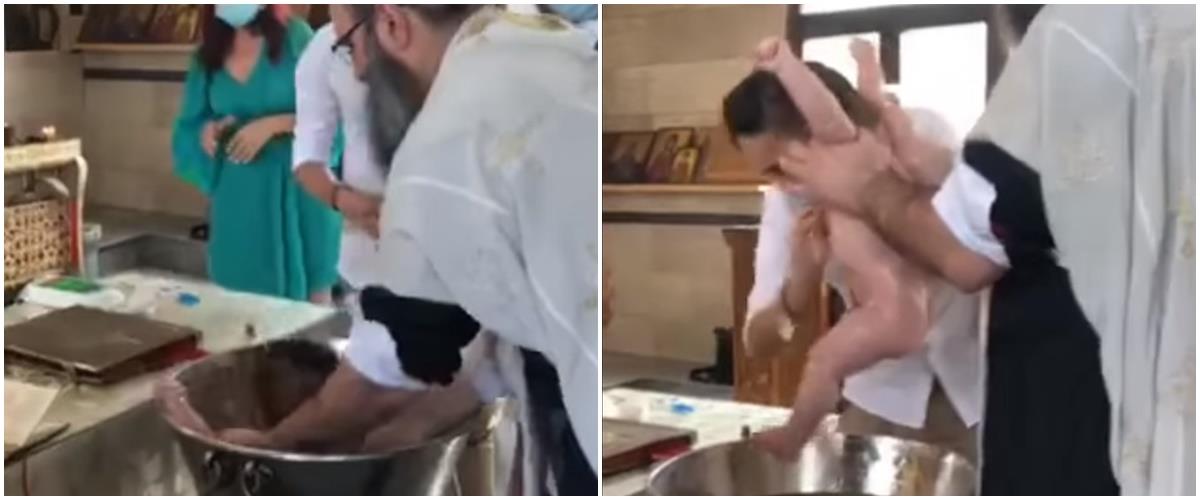 Όπως καταγγέλλει με ανάρτησή της στο facebook η Ντίνα Σιηττά, ο Πάτερ «κτυπά το μωρό της κατά τη βάπτιση», ενώ οι παρευρισκόμενοι φαίνεται να βρίσκονται σε κατάσταση σοκ.