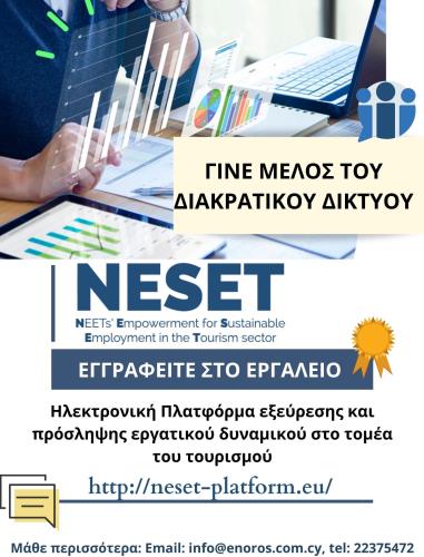 Η Enoros Consulting Ltd., μέλος του Ευρωπαϊκού σχήματος NESET – NEETs’ Empowerment for Sustainable Employment in the Tourism sector έχει αναπτύξει ένα δωρεάν, καινοτόμο εργαλείο εξεύρεσης και πρόσληψης εργατικού δυναμικού στο τομέα του τουρισμού.