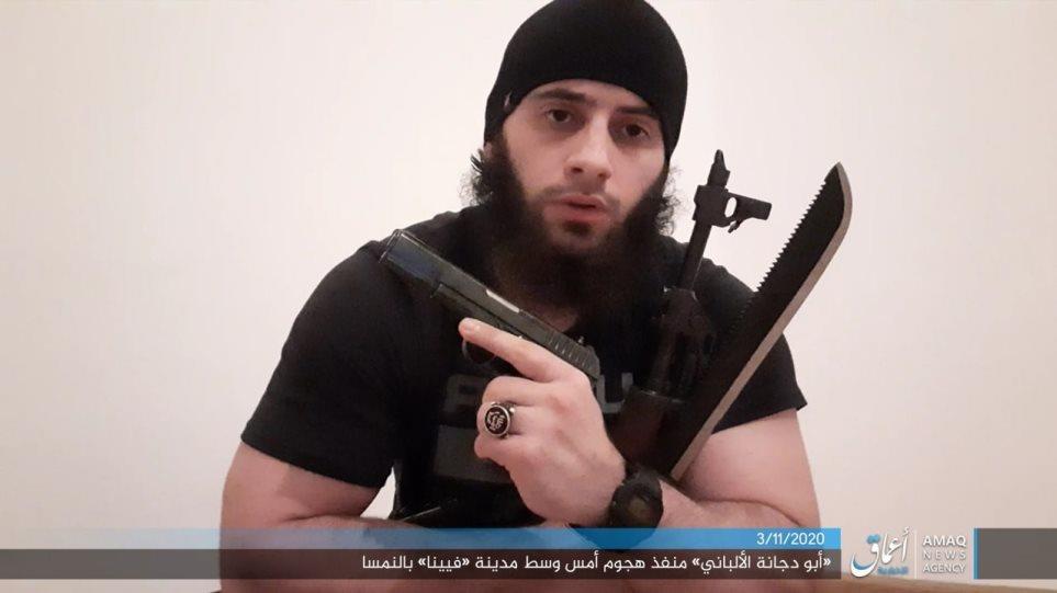 Σε ένα ξεχωριστό κείμενο, που συνοδεύεται από τη φωτογραφία ενός ένοπλου άνδρα με γένια, που ονομάζεται «Αμπού Νταγκνά αλ Αλμπάνι», το Amaq κάνει λόγο για «επίθεση με πυροβόλα όπλα που διέπραξε χθες (Δευτέρα) ένας μαχητής της οργάνωσης Ισλαμικό Κράτος στην πόλη της Βιέννης».