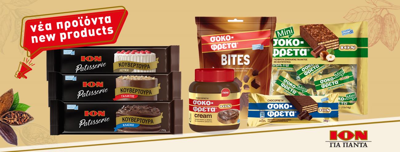 Έτσι η ΙΟΝ εμπλουτίζει την γκάμα της με την προσθήκη 3 νέων προϊόντων στην κατηγορία της σοκοφρέτας αλλά και με την προσθήκη των προϊόντων οικιακής ζαχαροπλαστικής.