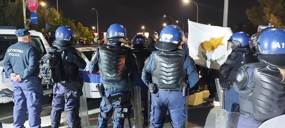 Στο σημείο βρέθηκε ισχυρή Αστυνομική δύναμη και πάνοπλα μέλη της Αστυνομίας για αποφυγή επεισοδίων, ενώ την ίδια ώρα η Αστυνομία συλλέγει οπτικό υλικό αφού οι διαμαρτυρόμενοι παραβιάζουν το διάταγμα το οποίο προνοεί απαγόρευση εκδηλώσεων.