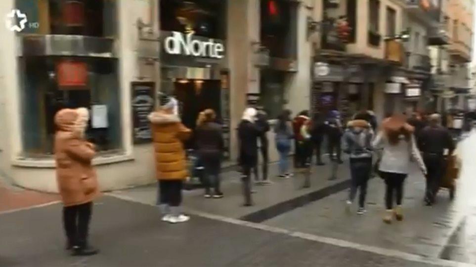 Μέλη υπηρεσίας σεκιούριτι επιβεβαίωναν ότι ο κόσμος τηρούσε τους κανόνες κοινωνικής αποστασιοποίησης στην ουρά έξω από το Dona Manolita, ένα πρακτορείο στο κέντρο της Μαδρίτης, που πουλάει δελτία για περισσότερα από 100 χρόνια. Τελευταία φορά που πούλησε ένα νικηφόρο δελτίο ήταν το 2019.