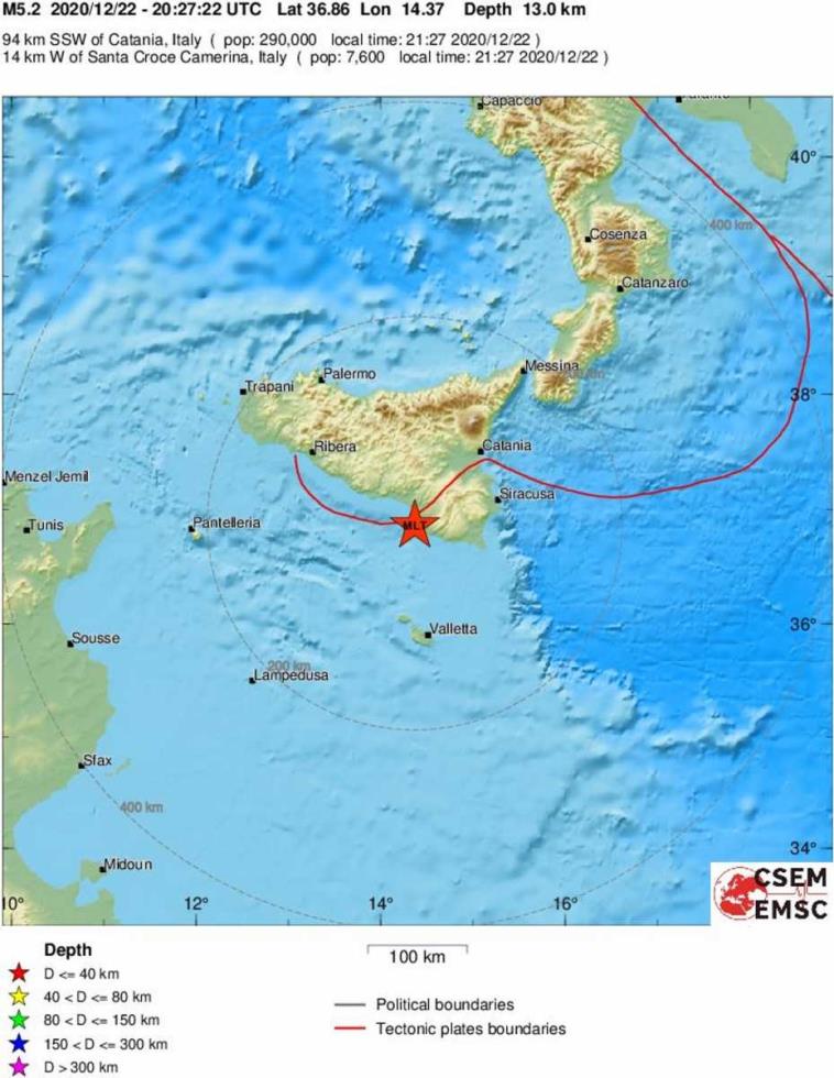 Ένας ισχυρότατος σεισμός σημειώθηκε στις 22.27 το βράδυ της Τρίτης, 22.12.2020 στην Ιταλία και συγκεκριμένα στη Σικελία.