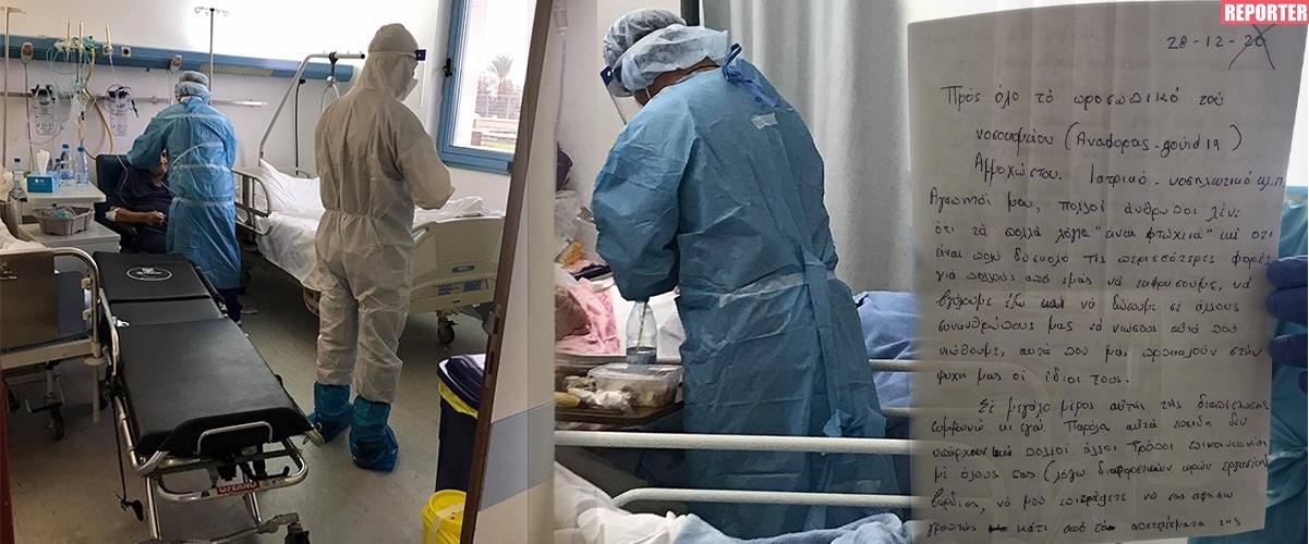 Μόλις του ανακοίνωσαν πως είναι προς το τέλος αυτής της ταλαιπωρίας και πως είναι κοντά στο εξιτήριο, ζήτησε αμέσως χαρτί για να γράψει. Ο κ. Δ. παρέδωσε λίγο αργότερα στους νοσηλευτές, τρεις σελίδες. Τρεις σελίδες γεμάτες ευγνωμοσύνη…