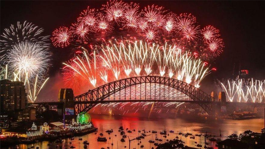 Η Αυστραλία υποδέχτηκε την Πρωτοχρονιά στις 3 το μεσημέρι ώρα Ελλάδας, με μια θεαματική επίδειξη πυροτεχνημάτων στο Σίδνεϊ, η οποία έφτασε, μέσω βίντεο, σε όλο τον κόσμο.