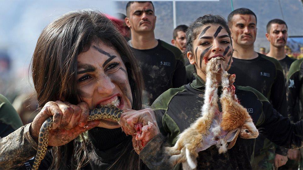 Όπως φαίνεται στις φωτογραφίες που ακολουθούν οι γυναίκες από το Κουρδιστάν δεν «μάσησαν» όταν κλήθηκαν να δαγκώσουν από κουνέλια μέχρι... φίδια!