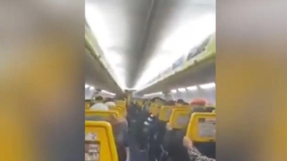Στο βίντεο φαίνονται σχεδόν όλοι οι επιβάτες να κρατάνε τα καθίσματα μπροστά τους, με άλλους να κλαίνε και άλλους να προσεύχονται.