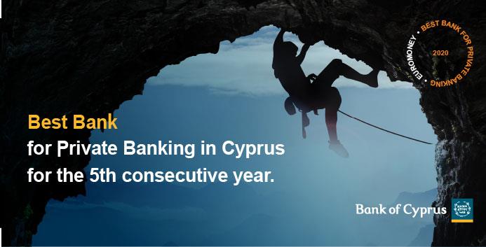 Bank of Cyprus has been named as the “Best Bank for Private Banking” in Cyprus by the internationally reputable magazine “Euromoney”, for the 5th consecutive year. This comes as a clear recognition of the professionalism, reliability and customer-oriented approach of Bank of Cyprus Private Banking.