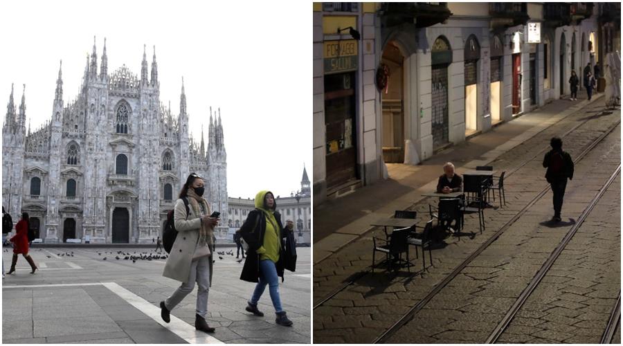 Το Μιλάνο, που βρίσκεται στο επίκεντρο της έξαρσης του κορωνοϊού, ζει πλέον σε άλλους ρυθμούς. Η πολύβουη πόλη με τα γεμάτα καφέ και τις ξακουστές μπουτίκ διάσημων οίκων μόδας δείχνει πλέον άδεια. Ο κόσμος είναι φοβισμένος και όσοι κυκλοφορούν στους δρόμους -κυρίως τουρίστες- φορούν απαραιτήτως μάσκα. Οι εναπομείναντες τουρίστες φωτογραφίζονται έξω από τα μεγάλα τουριστικά αξιοθέατα φορώντας μάσκες. Ο καθεδρικός της πόλης, η Σκάλα του Μιλάνου και πολλά ακόμη είναι κλειστά για το κοινό.