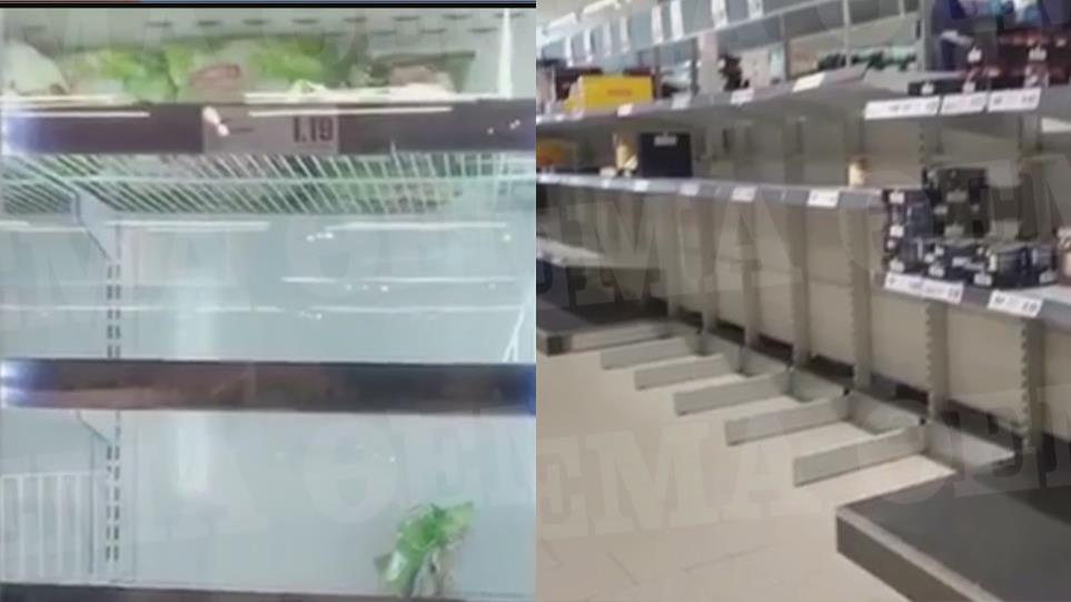 Όπως θα δείτε στο βίντεο που τράβηξαν για λογαριασμό του «protothema.gr» η Ελληνίδα Εμμανουέλα Μητριτσάκη και ο 15χρονος γιος της Τζουσέπε Γκαετάνο Ντίνο μπαίνουν σε υποκατάστημα γνωστής αλυσίδας σούπερ μάρκετ στη περιοχή Σινισέλο Μπαλσάμο βόρεια του Μιλάνου. Καταγράφουν τα άδεια ράφια και τις ελλείψεις σε βασικά προϊόντα, όπως όσπρια, ζάχαρη και αλεύρι.
