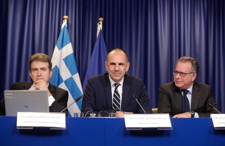 Ο Αναπληρωτής Υπουργός σημείωσε ότι "μιλάμε με βάση στοιχεία και όχι ως Έλληνες κατά των Τούρκων". Ο Υπουργός Επικρατείας επεσήμανε την εκστρατεία ψευδών ειδήσεων από τη Τουρκία, καθώς ο ελληνικός στρατός και αστυνομικοί δε χρησιμοποίησαν ποτέ όπλα κατά μεταναστών. Σημείωσε δε ότι "δε θα μπορούσαμε να επεξεργαστούμε το τεράστιο αριθμό των αιτημάτων ασύλου αν οι διαδικασίες συνεχίζονταν", ανακοινώνοντας ότι θα πρέπει να περιμένουμε ότι θα επιστρέψουμε στην κανονικότητα πριν από το μήνα. Εξήγησε δε ότι δεν υπάρχει θέμα νομιμότητας καθώς η απόφαση βασίζεται σε άρθρο για προστασία της δημόσιας ασφάλειας και υγείας.