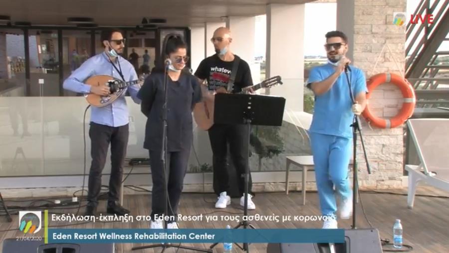 Σε δελτίο Τύπου του Eden Resort αναφέρεται ότι «το ιατρικό και νοσηλευτικό προσωπικό του Κέντρου Αποκατάστασης, μαζί με τους γιατρούς και τους υπεύθυνους του Γενικού Νοσοκομείου Αμμοχώστου, τραγούδησαν χθες το απόγευμα στα άτομα που διαμένουν, αυτό το δύσκολο διάστημα, στο Eden Resort με COVID-19, σε μια προσπάθεια να τους τονώσουν και να τους ενθαρρύνουν».