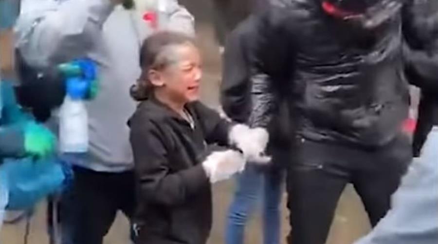 Στο βίντεο έχουν καταγραφεί και οι διαμαρτυρίες των διαδηλωτών που απαιτούν να μάθουν γιατί οι αστυνομικοί ψέκασαν με χημικά ένα μικρό παιδί και πολύ περισσότερο γιατί δεν βοήθησαν στη συνέχεια.