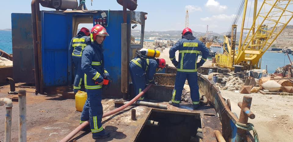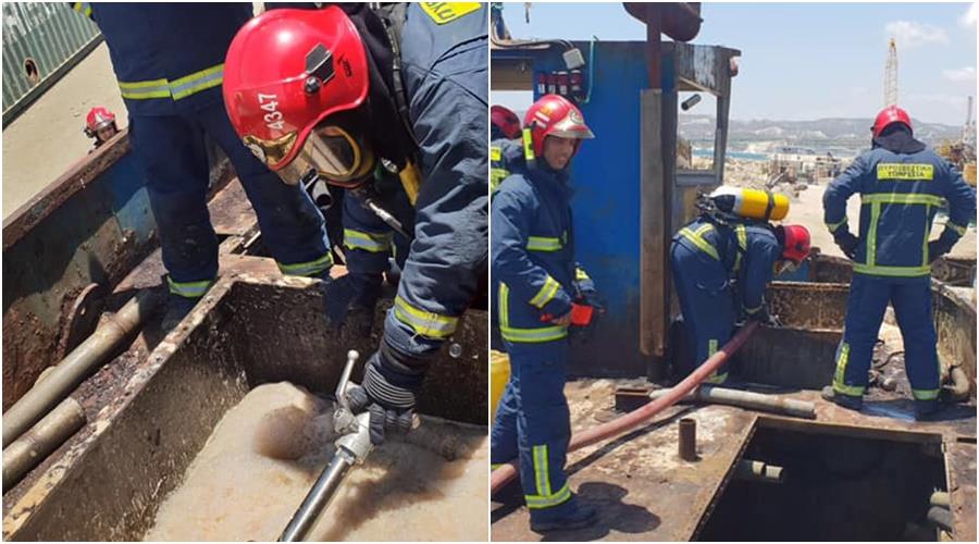 Σύμφωνα με ανακοίνωση της Πυροσβεστικής, υπήρξε ανάφλεξη υγρών καυσίμων κατά τη διάρκεια εργασιών οι οποίες γίνονταν σε σκάφος εκτός θαλάσσης.