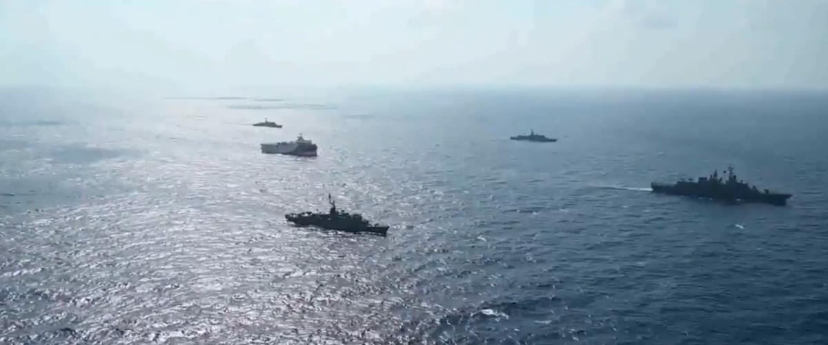 Το βίντεο δείχνει το Oruc Reis να πλέει στην ανοιχτή θάλασσα, συνοδευόμενο από τουλάχιστον πέντε πολεμικά πλοία.