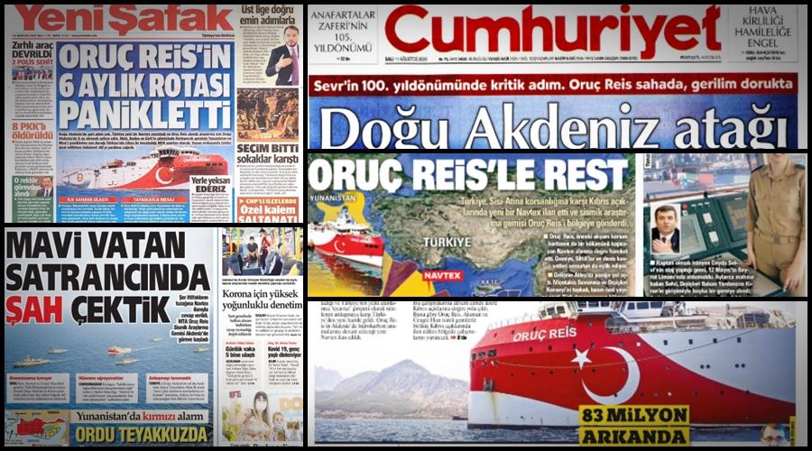 Αντίστοιχα η ΥΕΝΙ SAFAK γράφει «Προκάλεσε πανικό η εξάμηνη πορεία του Oruc Reis. «Δεν υποχωρούμε στην Ανατολική Μεσόγειο. Το Oruc Reis, ξεκίνησε πορεία 6 μηνών. Το ερευνητικό σκάφος θα πάει νότια του Καστελόριζου, της Ρόδου, νότια της Κρήτης και ο τελικός του στόχος θα είναι τα σύνορα του μνημονίου Τουρκίας Λιβύης».