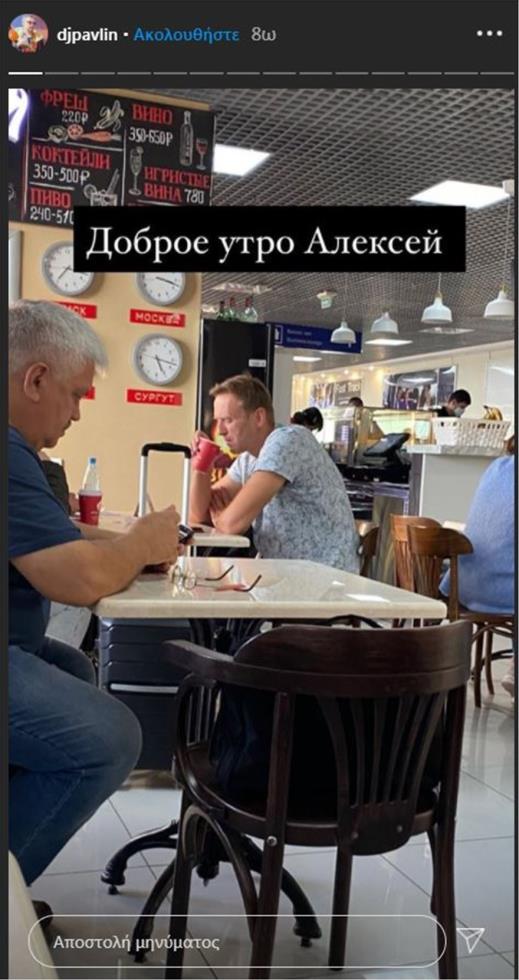 Την εκδοχή αυτή υποστηρίζει φωτογραφία που ανήρτησε στο Instagram ένας συνταξιδιώτης του Ναβάλνι στην επίμαχη πτήση. Στη συνέχεια, στο story που ανέβασε, εξηγεί ότι ο Ναβάλνι πήγε στην τουαλέτα λίγη ώρα μετά την απογείωση και δεν γύρισε ποτέ πίσω στη θέση του. Άρχισε να αισθάνεται ποολύ άσχημα και το πλήρωμα προσπάθησε να τον βοηθήσει αλλά εκείνος κραύγαζε από τον πόνο, γράφει στο story του ο Λεμπέντεβ.