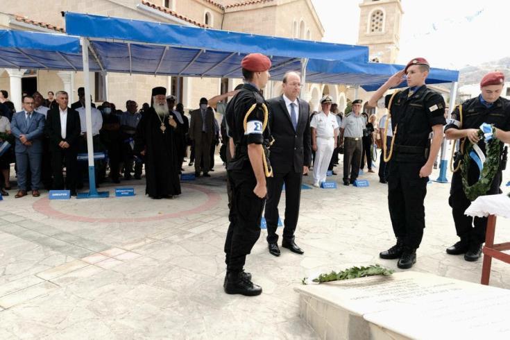 Είπε επίσης ότι με την θυσία τους οι μαχητές, οι ήρωες που τιμούμε σήμερα, απέτρεψαν τότε την δημιουργία προγεφυρώματος και την κατάληψη από τότε της Κύπρου.