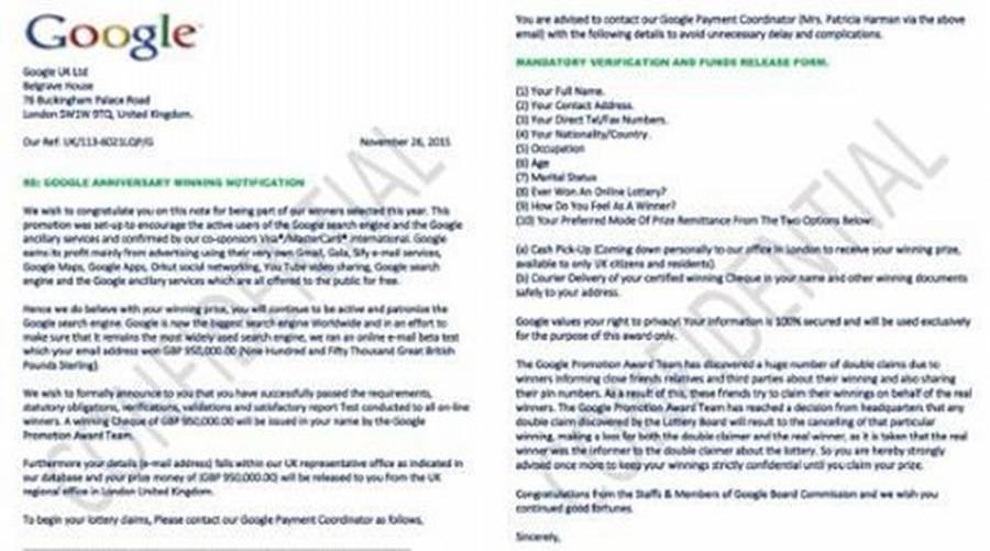 συμμετοχές σε μεγάλους διαγωνισμούς, επικαλούμενα μεγάλες εταιρείες και ότι έχουν κερδίσει μεγάλο ποσό, ότι τους αποστέλλεται μέσω διεθνούς εταιρείας ταχυμεταφορών πακέτο το οποίο χρειάζεται επιβεβαίωση στοιχείων και πρέπει να ακολουθήσουν σχετικό ηλεκτρονικό σύνδεσμο, εκβιαστικά μηνύματα ότι έχουν παραβιάσει τους κωδικούς πρόσβασης στους λογαριασμούς τους που διατηρούν στις διάφορες πλατφόρμες κοινωνικής δικτύωσης και ότι θα αποκαλύψουν σε άλλους τα προσωπικά τους αρχεία ή/και διαδικτυακή τους δραστηριότητα, απατηλά μηνύματα για κέρδη από κληρονομιές ή προσποιούνται ότι είναι αξιωματούχοι Στρατού, Κυβερνήσεων, μεγάλων και επώνυμων εταιρειών και ότι έχουν στη διάθεση τους χρυσό ή άλλης μορφής αντίτιμο αξίας, όπου ζητούν βοήθεια για μεταφορά.