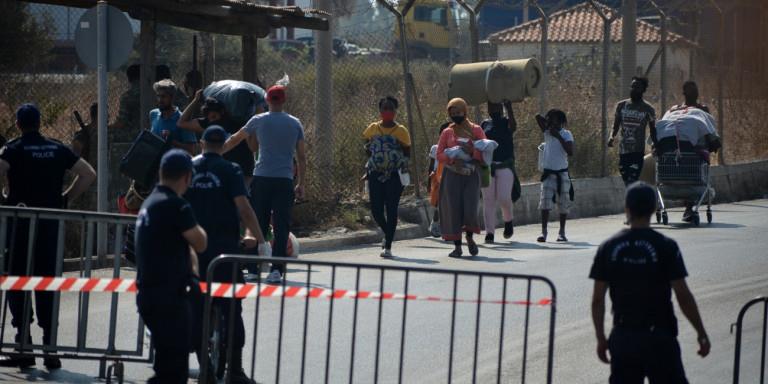 Ισχυρές αστυνομικές δυνάμεις απέκλεισαν την περιοχή της Λέσβου όπου έχουν κατασκηνώσει οι πρόσφυγες και οι μετανάστες.