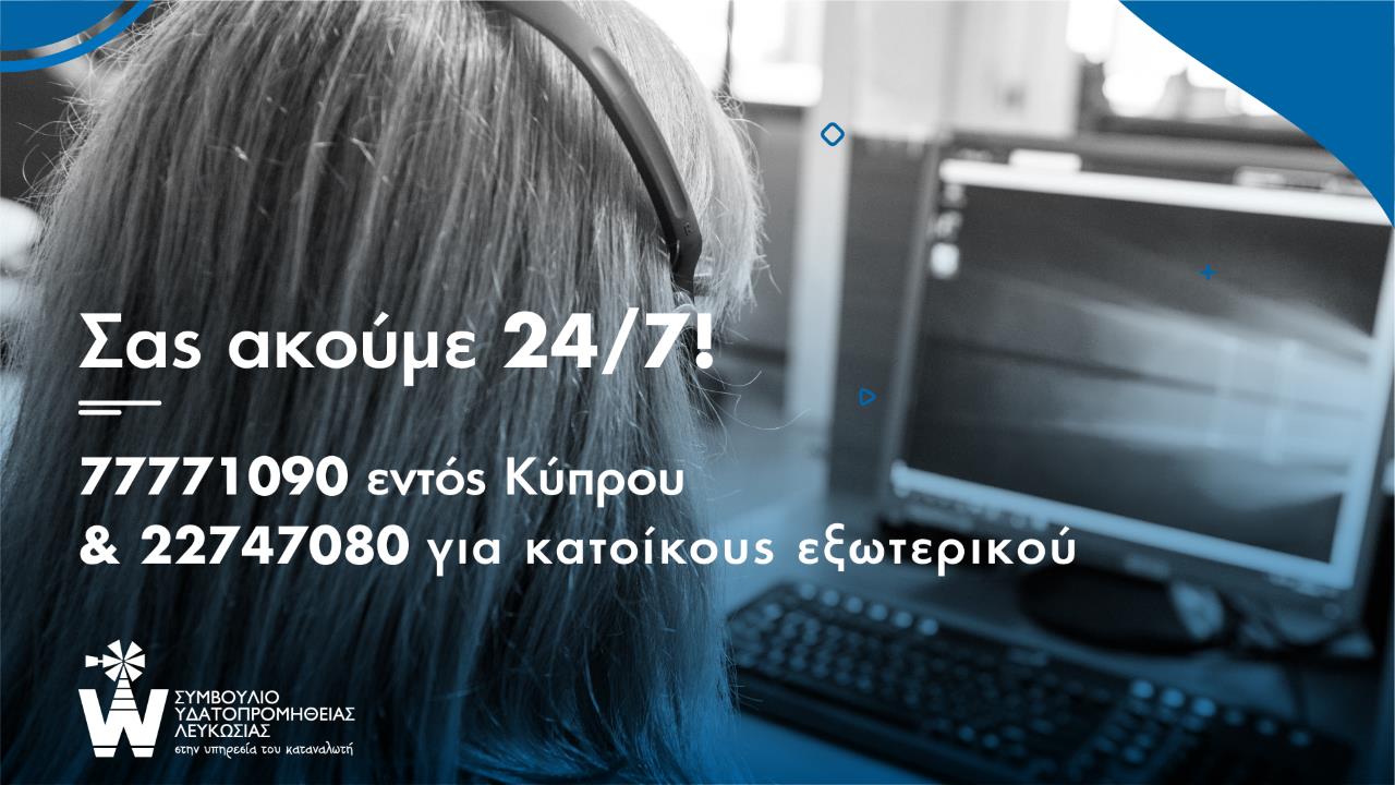 Το πλέον τεχνολογικά προηγμένο Call Center της Υδατοπρομήθειας Λευκωσίας, με άρτια στελεχωμένο προσωπικό, απαντά στις κλήσεις των καταναλωτών 7 φορές την εβδομάδα και σε εικοσιτετράωρη βάση.