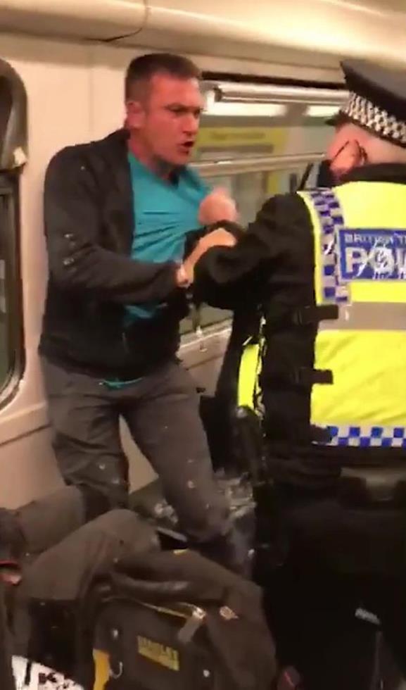 Ο Βρετανός αστυνομικός επέμεινε, ζητώντας του να κατέβει από το τρένο, με τους δυο τους να πιάνονται στα χέρια και ο αστυνομικός να κάνει χρήση σπρέι πιπεριού, πριν περάσει χειροπέδες στον επιβάτη, που αντιστάθηκε στη σύλληψη.