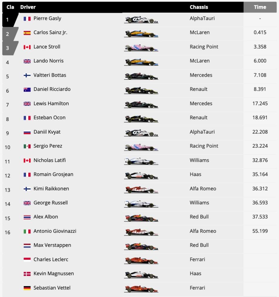 Στο τέλος ο Πιέρ Γκασλί αντέχει την πίεση του Σάινθ και τερματίζει, σε μια πανάξια πρώτη θέση με τον Κάρλος Σάινθ 2ο και 3ο τον Λανς Στρολ.