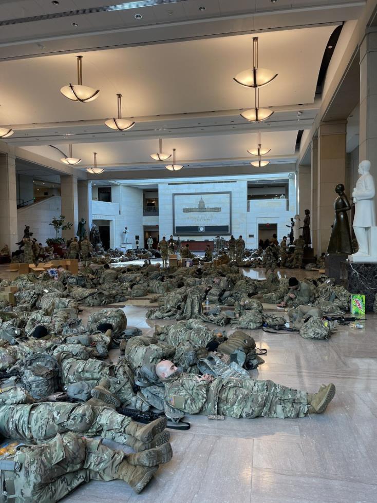 Όπως σημειώνει στις αναρτήσεις του ο πολιτικός συντάκτης της Huffington Post, Ιγκόρ Μπόμπιτς, οι σκηνές ήταν «εντυπωσιακές». Μάλιστα, ένας από τους στρατιώτες, του είπε βλέποντας το σκηνικό πως είναι για τα βιβλία ιστορία. «Δεν έχουμε δει κάτι τέτοιο τα τελευταία 160 χρόνια, από την εποχή του Εμφυλίου Πολέμου» είπε προσθέτοντας πως την τελευταία φορά που στρατιώτες προστάτευσαν το Καπιτώλιο, ήταν κατά την διάρκεια της διοίκησης του προέδρου Αβραάμ Λινκολν.
