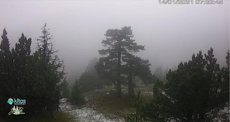 Οι εικόνες που φτάνουν από τις κορυφές του Τροόδους είναι μαγευτικές, αφού δείχνουν πως τα δέντρα και το έδαφος έχουν καλυφθεί από μία στρώση χιονιού. Σε βίντεο που ανήρτησε η σελίδα «Kitasweather» στο Facebook, φαίνεται ότι η χιονόπτωση που ξεκίνησε λίγο μετά τις εννέα χθες το βράδυ, συνεχίστηκε και σήμερα το πρωί.