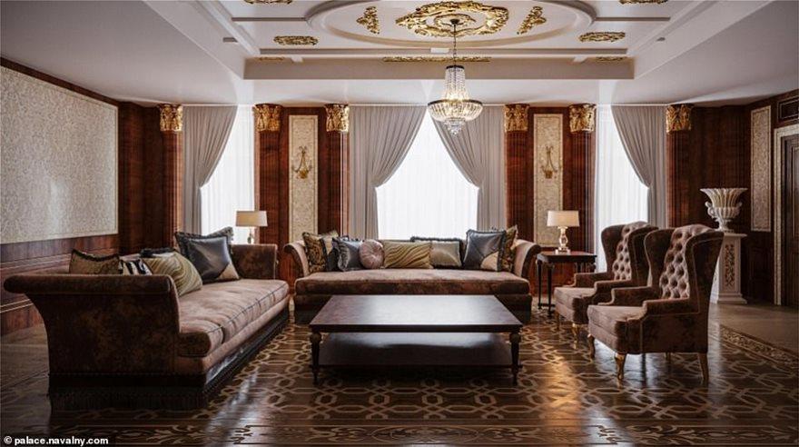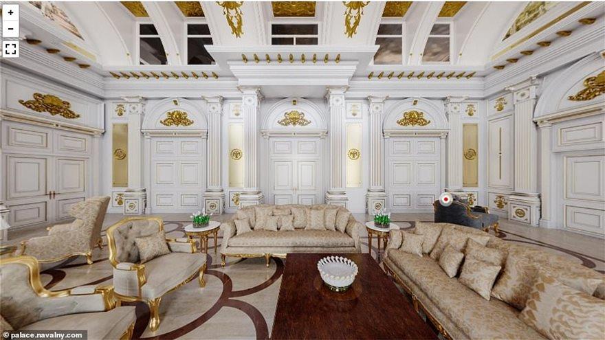 Σύμφωνα με τον Ναβάλνι δεν είναι μια απλή βίλα, αλλά ένα παλάτι που θυμίζει άλλες εποχές, έτοιμο να στεγάσει όχι μόνον την οικογένεια του Πούτιν αλλά και τους «αυλικούς» του.
