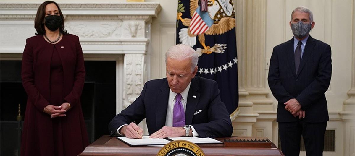 Ο 46ος πρόεδρος της χώρας άρχισε να υλοποίει τις δεσμεύσεις του ξεκινώντας από την καταπολέμηση της πανδημίας του κορωνοϊού, την επιστροφή της χώρας στον Παγκόσμιο Οργανισμό Υγείας και στη Συμφωνία του Παρισιού για την κλιματική αλλαγή.