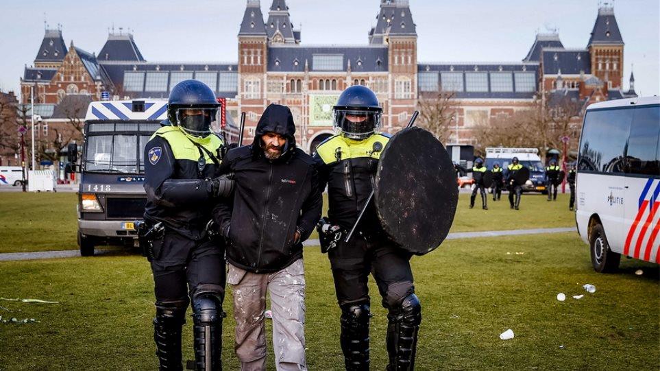 Περίπου 30 άνθρωποι συνελήφθησαν στο Άμστερνταμ, όταν η αστυνομία διέλυσε σήμερα μια διαμαρτυρία κατά του lockdown, που έχει επιβληθεί στη μάχη με τον κορωνοϊό, με τις αρχές να προσπαθούν να αποτρέψουν το ενδεχόμενο να επαναληφθούν οι ταραχές που συγκλόνισαν πόλεις της Ολλανδίας, την προηγούμενη εβδομάδα.