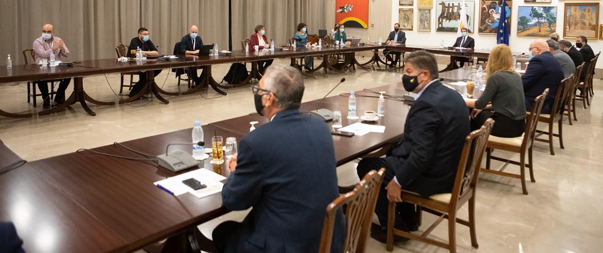 Οι συσκέψεις διαδέχονται η μία την άλλη στο Υπουργείο Υγείας, με σκοπό την ετοιμασία εισηγήσεων προς το Υπουργικό Συμβούλιο, το οποίο θα συνέλθει την Πέμπτη το πρωί στις 11:30 για να κλειδώσει τα νέα μέτρα. Ο Πρόεδρος της Δημοκρατίας, θα έχει αύριο στις 11 το πρωί σύσκεψη με τα μέλη της Συμβουλευτικής Επιστημονικής Ομάδας που θα καταθέσουν τις εισηγήσεις τους και θα αναλύσουν την επιδημιολογική εικόνα. Παρόντες εκτός από τον Κωνσταντίνο Ιωάννου, θα είναι οι υπουργοί Οικονομικών, Εργασίας και Παιδείας προκειμένου να διαπιστωθούν οι δυνατότητες για κάθε τομέα που επηρεάζεται.