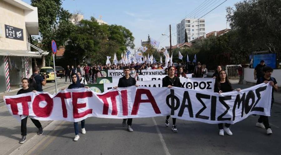 Καταδικάζοντας την πολιτική εκείνη των ΗΠΑ που ποδηγέτησε την εθνική ανεξαρτησία και προσπάθησε να καταβάλει τη λαϊκή κυριαρχία στην Ελλάδα, οι μαθητές πραγματοποίησαν το πρωί της Τετάρτης ειρηνική εκδήλωση Μνήμης και Τιμής της εξέγερσης του Πολυτεχνείου με το σύνθημα «Κύπρος Πολυτεχνείο Ποτέ πια Φασισμός!», με αφορμή τη συμπλήρωση 48 χρόνων από την εξέγερση των φοιτητών του Πολυτεχνείου, στην Αθήνα, το Νοέμβριο του 1973.